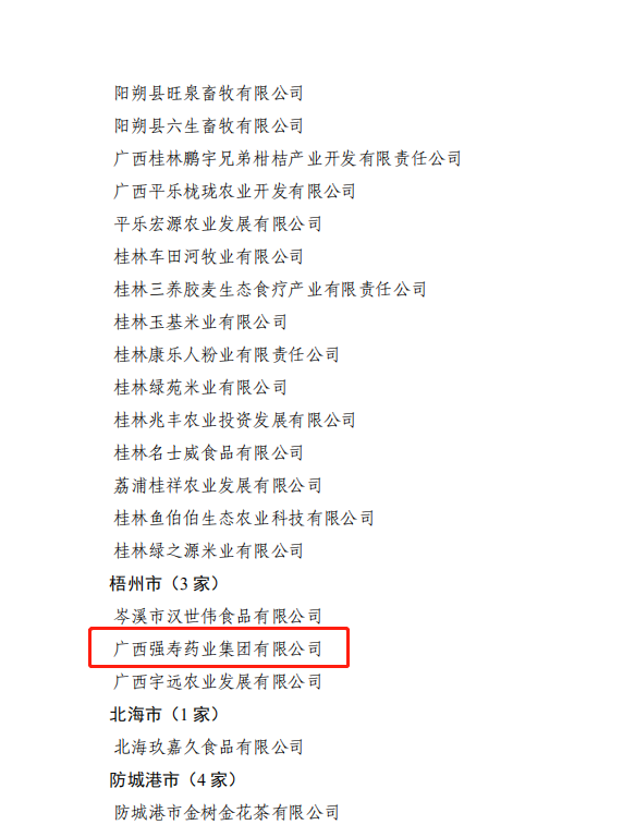 廣西強(qiáng)壽藥業(yè)集團(tuán)榮獲“自治區(qū)級(jí)農(nóng)業(yè)龍頭企業(yè)”稱(chēng)號(hào)