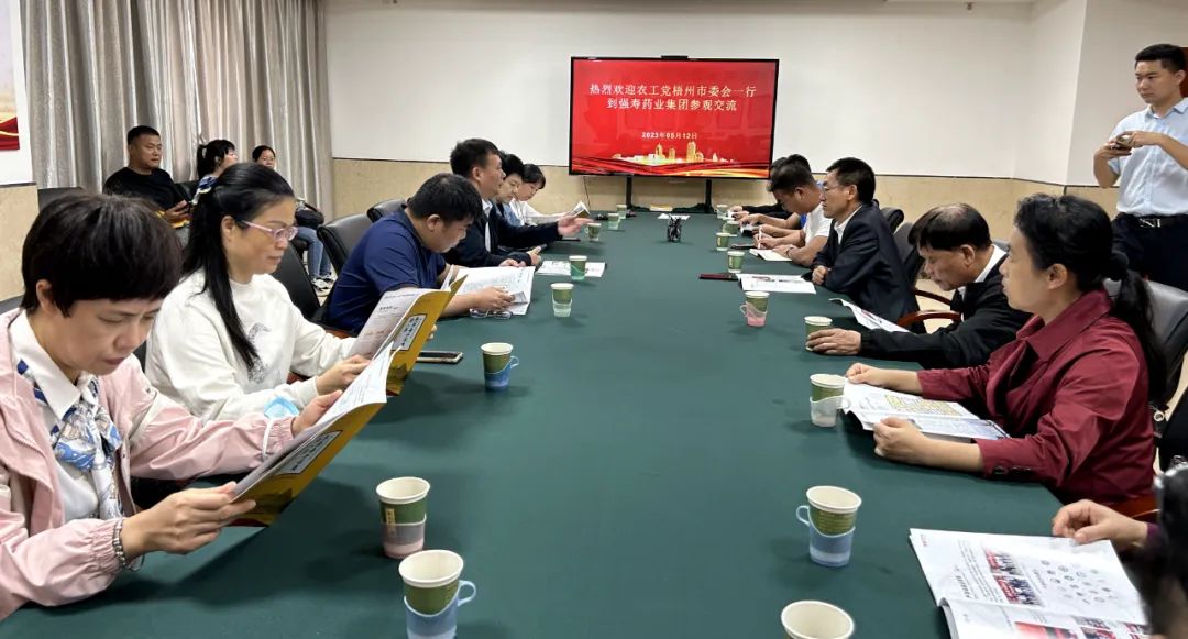 5月12日上午,農(nóng)工黨梧州市委會主委張崇貴、專職副主委兼秘書長劉萍率各支部負(fù)責(zé)人、部分骨干黨員代表到強壽藥業(yè)集團參觀交流。